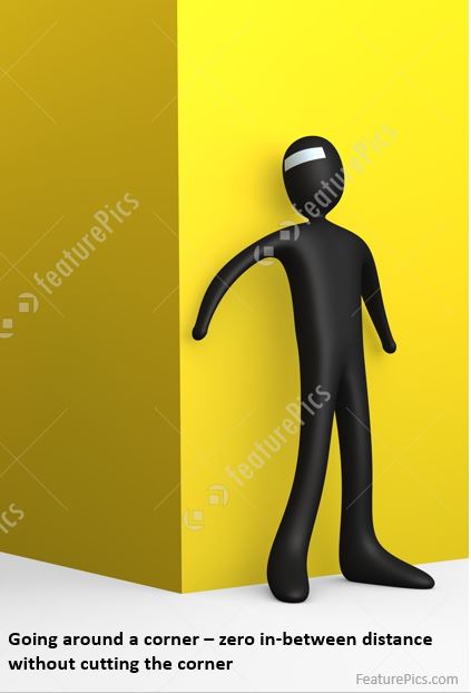 When you go around a corner, you don’t try to alter the position of the corner. You can go around it effectively by shortening the distance in-between as much as you wish. If the distance is shortened to “zero”, you are in touch with the corner throughout the going-around movement but you are still not altering its position, i.e. you will never cut the corner. Going as such, it can be described as: you are wrapping around the corner.