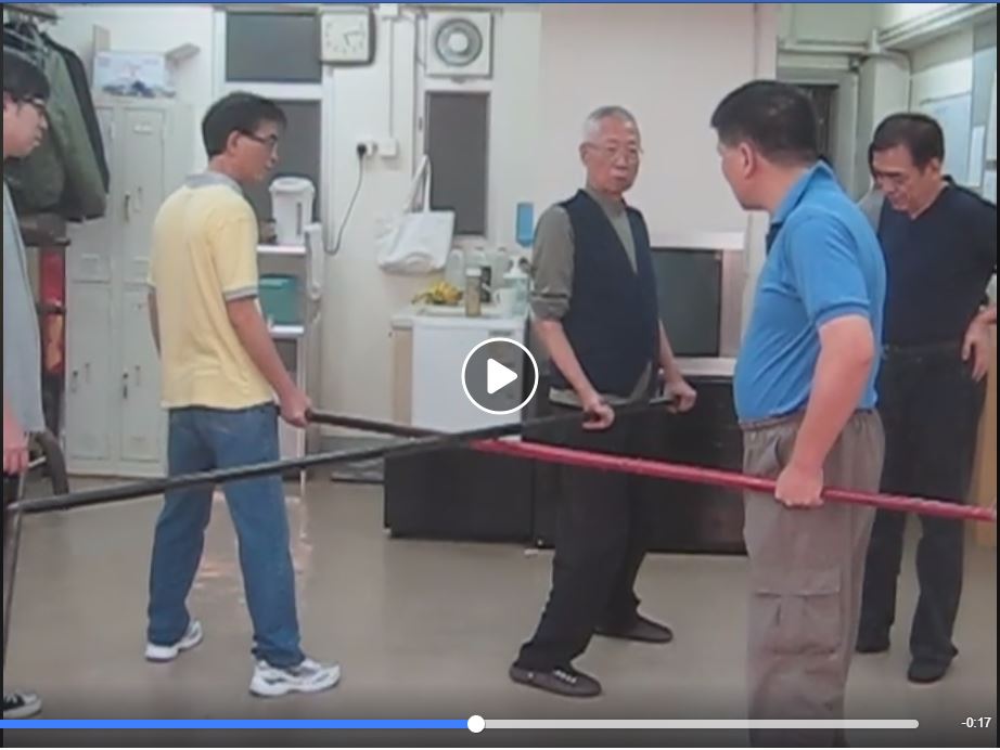 You are recalled that the jackscrew effect has been put forward at this page to explain the Wing Chun punching. (Refer to the post [Penetrating Punch and The Wing Chun Stance – The Jackscrew Analogy] 2014.04.07.) This is the same jackscrew effect being talked about here for operating the pole. And yes, you can actually regard the “Kin Chow Woon” here are indeed launching a punch towards the pole; the difference is that in a normal punch, the impact area is the fist’s front, while here the contact area is within the wrapping palm (i.e. inside the fist).